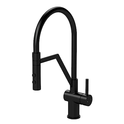 AmazonContemporary and functional, the Ravi range of mono kitchen sink mixer taps from nuie combines designer details and quality materials and manufacturing to bring you a reliable kitchen tap for a busy part of your kitchen! With 1 easy to use side lever handle. In a contemporary design, with a round flexi spout, the deck mounted tap is perfect for the pots, pans and washing up. Manufactured from high quality brass internals with a striking Matt Black finish. With ceramic disc technology for a smooth operation and a longer tap life. Complementing Brushed Gunmetal basket strainer waste available from nuie for a consistent kitchen brassware design. Operating pressure of 0.5 bar. DIMENSIONS - H: 436mm, W: 132mm, D: 258mm 3 year manufacturer's guarantee, Weight: 3.527396192 Pounds, Manufacturer: nuie