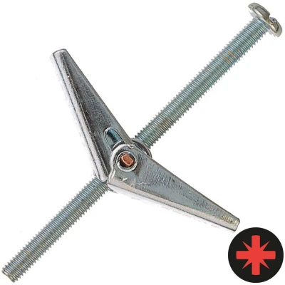 General description Rawlplug Spring toggles are designed for fixing to cavity walls and ceilings with low structural strength, such as lathe and plaster. The toggle mechanism spreads the load over a wide area, providing extra security, making them ideal for double thickness plasterboard and large fixtures. They are easy to use and require no special tools. Technical specifications Size: M5 x 50mm Pack quantity: 20 Compatibility and accessories Suitable for use in: Plasterboard Lathe and plaster Plywood Hardwood