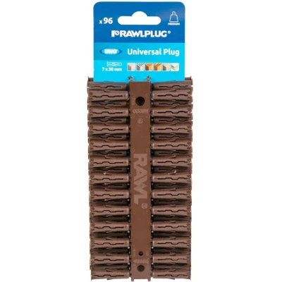 JoybuyRawlplug Brown UNO® Plugs 7 x 30mm (Card 96) are universal wall plugs suitable for fixing into concrete, brickwork, stone, blockwork, and plasterboard. Featuring anti-rotation and instant grip, they are ideal for shelving, cabinets, and more, delivering reliable performance trusted by professionals globally.