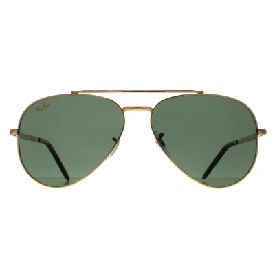 Ray-Ban Aviator Unisex Polished Gold Green RB3625 New Aviator Sunglasses are a fusion of classic design and modern innovation. With a nod to the iconic aviator silhouette, these sunglasses feature a sleek metal frame and bold double bridge, delivering a contemporary twist on a beloved style. The updated, slightly squared lenses offer a fresh take on the traditional aviator shape, exuding confidence and sophistication. Crafted with precision and attention to detail, these sunglasses not only make a fashion statement but also provide exceptional UV protection, ensuring both style and eye safety.