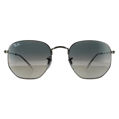 Ray-Ban Sunglasses Hexagonal RB3548N 004/71 Gunmetal Dark Grey Gradient are a very unique hexagonal shaped frame and feature the latest flat crystal lenses for a updated version of the classic metal round sunglasses. Super thin temples and coined profile to the frame finish the modern fashionable look.