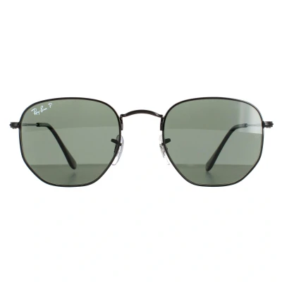 Ray Ban Square Unisex Polished Black/Green Polarized Hexagonal RB3548N Sunglasses Metal (archived) One Size