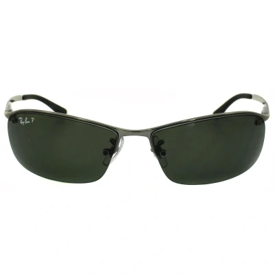 Ray-Ban Sunglasses Top Bar 3183 Gunmetal Polarized Green 004/9A are a part of the Ray-Ban Active family and the perfect choice for the outdoors or somebody with an on the go lifestyle. The semi-rimless design is modern and minimal for an understated, slick look and feature slim flexible arms for maximum comfort. The metal frame is super lightweight and the soft silicone nose pads are adjustable for a personalised fit. Ray-Ban's signature logo can be found on the lens in addition to the temple hinge..