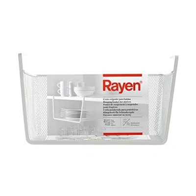 Rayen Hanging Basket for Shelves Multifunctional Easy Installation, White, Medidas: 30 x 15 25 cm