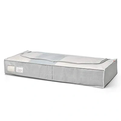 Storage and organisation box: This multi-purpose protective cover will protect your clothes from dust and help keep them in better condition for longer This storage cover or box can be stored under the bed, or inside or on top of the wardrobe. On the side of the storage box there is a pocket in which to put a label identifying what is in the box This storage cover is made of very resistant and breathable material, and it has a zip. It is translucent so you can see its contents without having to open it The cover comes with a vent to improve air circulation