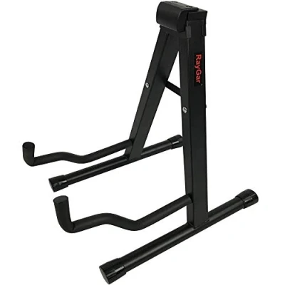 A-Frame is made from sturdy steel Holds Electric/Acoustic guitars Neoprene padding Black finish Ideal for bedroom, studio & rehearsal space