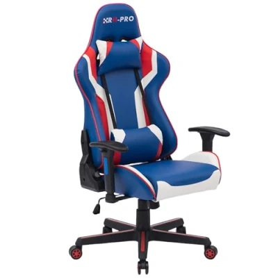 RayGar RG PRO Gaming Chair High Back Racing Style, PU Faux Leather, Ergonomic Design with Adjustable Recline, Lumbar Support and Neck Pillow, 360 Degree Swivel (Blue)