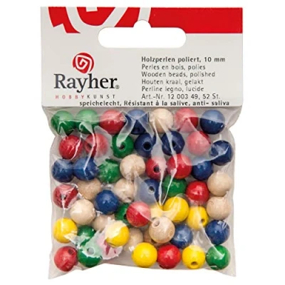 Rayher 1250101 Wooden Beads, mixed, 10mm ø