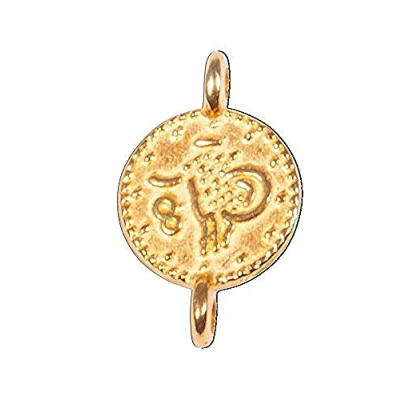 Rayher 22776616 Metal Mini Pendant Coin, 7.3 mm, Gold, with 2 Eyelets, Pack of 4, Normal