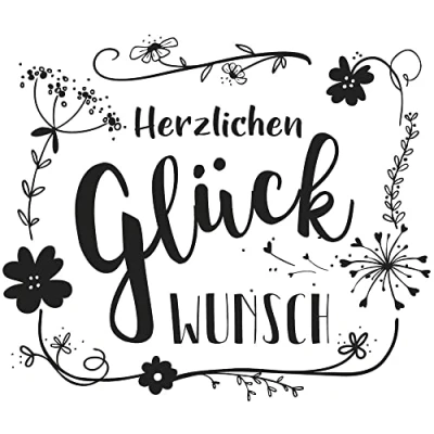 Rayher 29109000 Wood Mounted Rubber Stamp featuring the phrase Herzlichen Glueckwunsch, Stamps for Crafting, Card Making and Scrapbooking, 8cm x 9cm, congratulations