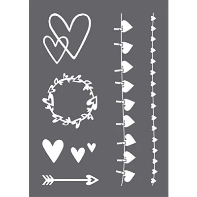 Rayher 45128000 Set of Mask Stencil Squeegee for Crafts and Painting, Reusable Silk Screen Template with Different Heart Designs Wedding Birth Announcement Cards, 21x29.7cm, colourless, A4