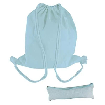 Rayher 53989356 Drawstring Backpack and Pencil Case for Textile Crafts Screen Printing, Cotton Polyester Blend, Light Blue