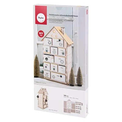 Rayher 62910505 Wood.Build.Adv.Calendar House,FSCMixCred, Natural, 25.5x17.5x45.5cm, 185 part, Box 1Set, Birch Wood
