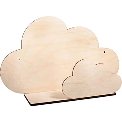 Rayher 62975505 Wood Shelf Construction Kit with Interlocking Parts, Cloud Shaped Kid's Wooden Shelf, 5 slot together Pieces, 35x21x10 cm