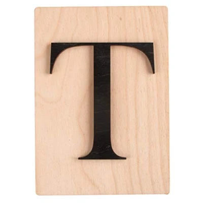 This wood tile features the letter T. The tile is made of birch wood and comes in the size 10.5 x 14.8 cm with a thickness of 4 mm. The laser cut letter is permanently mounted on the tile and is approx. 9cm high and has a thickness of 3 mm Create beautiful wall art and combine letter tiles to spell out names of family members or encouraging words for the whole family to enjoy. Decorate the stairway, living room, family room or any other room where the whole family comes together You can easily change the colour of the letter by painting it with chalky finish paint or other acrylic paints to match your craft project. Use glitter spray or apply metallic paint for a dazzling look The letter tile is perfect to design a personalized door sign for kids. A wonderful addition to the play room, a cozy reading nook or nursery. Add embellishments like ribbons, flowers, sport themed pieces or animal shapes with double sided tape or hot melt glue to make your little one smile Letter: T Size: 10.5 x 14.8 cm