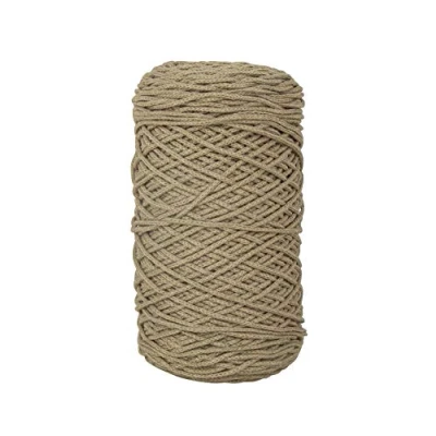 The base material for this thread are recycled textiles, braided into a thin yarn. That versatile twine is washable and suitable for many different craft projects like knitting, crocheting, weaving, and more Create beautiful macramé jewellery, knotted shapes or patterns with this soft yarn. Knot the strand into plant hangers, wall hangings, table runners and more handmade home décor pieces. String wooden beads, pearls or little charms to make a unique dreamcatcher Perfect for vintage style wedding decorations. Wrap it around vases or zinc flowerpots to highlight your rustic wedding table decoration. Make crochet napkin rings for a warm and romantic feel. It makes also a perfect closure for wedding favours Use it to give save the date cards, invitations or place cards a country style charm, combine it with lace or flowers and make your homemade cards stand out. Easily add texture to your scrapbook pages and papercraft ideas Weight: 250 g, Diameter: 2 mm, Length: approx. 250 m, Colour: reed