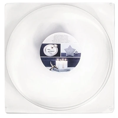 This durable mould features a round plate shape with a diameter of 25cm. The reusable casting mould can withstand temperatures of up to 60° C. The clear material allows you to quickly check for bubbles or uneven distribution Use this mould for concrete, casting powder or clay. Add colour to your DIY crafts and sprinkle pigments into your casting mixture prior to casting. You can also paint the fully dried shape with acrylic paint Decorate it with glitter glue, washi tape or ribbons to make it stand out. Try stamps or stencils to highlight your homemade piece with phrases, statements or intricate designs. Use the tray as candle plate, saucer for succulents or as decorative piece for your table setting To protect your windowsill, tabletop, dresser or any other furniture from scratches, simply attach felt on the bottom of your casted form or use sandpaper to sand and smoothen the edges You will need approx. 2400g of Raysin 200 or 3400g creative concrete casting powder for one solid plate