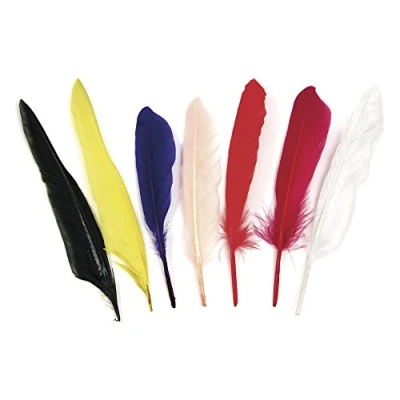 Bag of 75 assorted coloured feathers for arts and crafts projects Approximate feather length 17.5 cm. Shapes and sizes vary. Decorate collages, pictures, dream catchers, party tables, masks, floral arrangements, and more! Add flare to carnival hats, costumes and headdresses. Perfect addition for a variety of children's crafts.