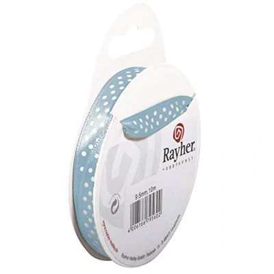 RAYHER HOBBY 5540608 Polka Dot Satin Ribbon 9.5 mm roll 10 m, light blue
