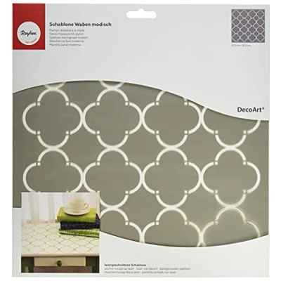 This reusable stencil comes in the size 30.5x30.5cm and features a modern honeycomb pattern. Each of the honeycombs measures approx. 7x7cm This frameless stencil is ideal for various DIY stencilling projects. You can use the template with acrylic paint, markers or chalky finish paint to create a beautiful statement wall or to add this honeycomb design to your furniture and home décor pieces Upcycle curtains and throw pillow covers with this screen-printing mask. Embellish shirts, drawstring bags, cotton totes and more. For dazzling effects use glitter fabric markers, pearl pen or metallic fabric paint Make lovely prints even on curved items with this flexible stencil. Use non-permanent spray adhesive to hold your stencil in place. On some surfaces you may have to use additional adhesives like masking or painter’s tape For crisp and clean results use only special stencilling brushes like a sponge brush. Work with just a little paint and build up the paint layer by layer
