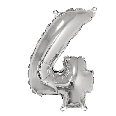 This foil balloon in the shape of the number 4 with built-in sealing valve comes in the height of 40cm and feature two loops on top for easy hanging. The balloon is designed for air filling only The large balloon is a wonderful addition to your birthday decorations. Easily attach ribbons, streamers, tassels and more to match your party theme. Combine it with a banner or a balloon arch for stunning results Mix and match with other number balloons and create a wonderful birthday hanging decoration. Make a DIY backdrop to take lovely photos of the birthday girl or boy and guests. You can also use the balloon as fun photo prop for the birthday photo booth Highlight your party table decorations, use it to decorate the gift table, or embellish any other space you would like to draw attention to with this silver number balloon One pack includes one pieces. The balloon is supplied uninflated