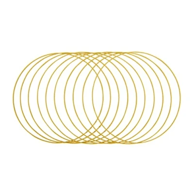This set is perfect for DIY Dream Catcher and Spirit Wheel ideas. Wrap a hoop with leather cord or leave it as is. String pearls, beads or small stones to make it stand out. Add feathers and decorative trinkets for a truly unique dreamcatcher Make your own wedding decorations and embellish the hoops with lace, ribbons, flowers and more to match your wedding theme. Transform the golden rings into an eye-catching welcome sign or a Bohemian style sweetheart table decoration An ideal base for handcrafted macramé pieces and knotted wall hangings. Use it for wreath making projects and attach decorative stems, twigs and other materials to match with your seasonal decorations. Easily design an elegant wreath with only a few silk flowers and some floral wire An excellent frame for homemade mobiles for the nursery or kids' room. Mix and match different sized rings and hang cute animal shapes, fluffy clouds or sparkling stars that make your little one smile Diameter: 30cm, Thickness: 3.5mm
