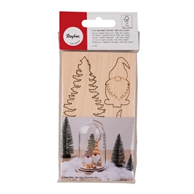 Rayher Set of 2 Building Kits for 3D Gnome Scenery, Wooden Display with Design, Seasonal DIY Wood Craft Set, natural wood, Height 8.4cm, Diameter 6cm, 46672505