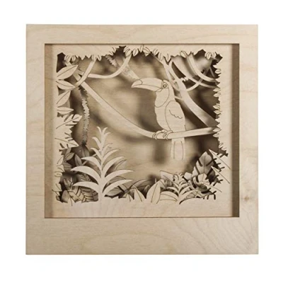 Rayher Shadow Box Building Kit with Toucan Design, 3D Scenery, DIY Wood Craft Set, 11 slot together Pieces, FSC certified product, 24x24x6.5cm, 62853505