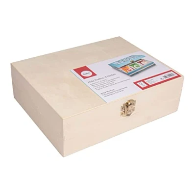 This tea organiser measures 21.5x18x7cm and features a hinged lid and a gold-coloured metal closure. The tea box comes with 6 compartments, each in the size of 6.5x8cm This tea storage is ideal for holding your favourite individually wrapped teas or coffee pods and pads. You can also use the compartment box to store herbs and spices. Easily transform the chest into a baby keepsake box, a jewellery box or trinket box Create a personalised tea storage box and enhance the natural wooden look with varnish or paint. Paint it with different layers of chalky finish paint and sand the top chalk paint layer for a beautiful shabby chic look. Use stamps or stencils to add your own designs Make a DIY teacher appreciation gift. Transfer photos or drawings onto the plain surface with the decoupage technique. It also makes a lovely gift box, simply fill the compartments with little presents or money for a unique wedding, birthday or baby shower gift Please note, this wooden tea box is sold empty
