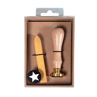 This wax seal set contains 1 wax stamp with star sealing coin, and 1x12g gold-coloured wickless wax stick. The coin features a diameter of 2.5cm. You can make approx. 6-8 seals with the included wax stick The sealing wax is a wonderful addition to your card making project. Give birthday cards, invitations, or birth announcement cards a personal touch with a handmade wax seal Easily add a seal to envelopes or packages. The flexible and strong holding wax is suitable for mailing. Wrap cards and gifts with twine and tightly seal the cord to keep it secured during the postal process Ideal for DIY wedding crafts. Enhance wedding favour boxes, place cards, table signs, or thank you cards with a timeless wax decoration. Combine the wax seal with satin ribbons for a luxurious touch For a large number of invitations, make bulk stamp seals ahead of time. Simply drip the wax onto a baking parchment paper. That way the wax seals come off easily and you can glue the seals onto the envelopes later on