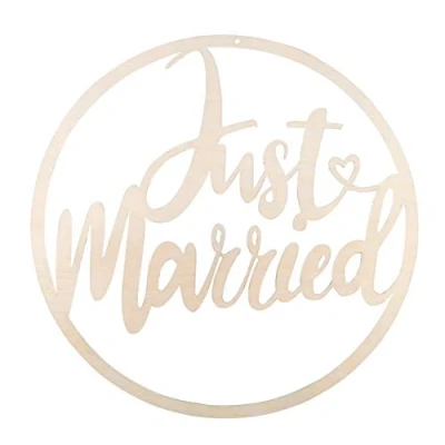 This wooden wreath has a diameter of 30cm and features the phrase just married. The wooden ring with wedding phrase is made of sustainable wood Match the plain wood to your style. For a glamourous look use high gloss metallic paint or glitter spray. For a rustic wedding, vitage or country style wedding theme try chalky finish paint with a lovely matt finish This wreath is a wonderful addition to your DIY wedding decorations. Easily attach ribbons, silk flowers, self-adhesive rhinestones, and more. Combine it with a floral garland, a balloon arch, or lace fabric for a romantic look Create a lovely backdrop for your photo booth with this just married sign. Use the wooden hoop as a fun wedding photo booth prop to take wonderful pictures of your nearest and dearest at the wedding reception photo station Highlight the sweetheart table with this wedding wreath. Add it to the cake table, wedding gift table or any other space you would like to draw attention to