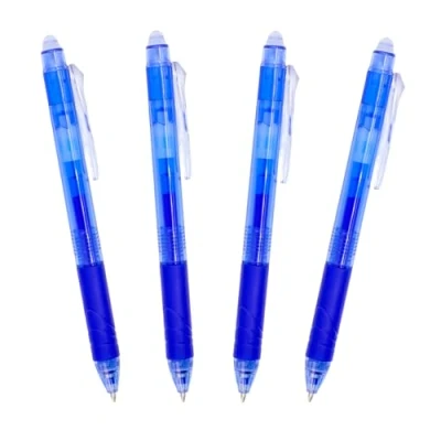 RAYLU PAPER® Pack of 4 Retractable Erasable Ballpoint Pens, with Hybrid Gel Ink, Blue and 0.7mm Stroke (4 Pens)