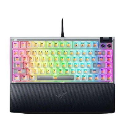 Razer BlackWidow V4 75% Phantom White Hot swappable mechanical gaming keyboard Orange Tactile Switches media roller with 2 dedicated keys RGB US Layout Edition