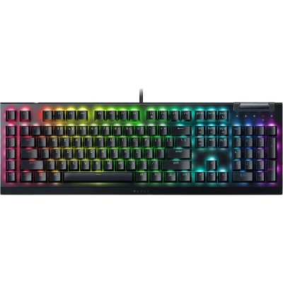 Razer Green Mechanical Switches for precise execution with a clicky, tactile feel; With a 1.9mm actuation point requiring just 50g of force, experience the perfect pairing of pressure and response time—for precise inputs with satisfying, tactile feedback 6 Dedicated Macro Keys for customizable control at your fingertips; From popping your ult to optimizing your skill rotation, expand your arsenal of commands with a set of easy-access macro keys that can be programmed to your playstyle Multi-Function Roller and Secondary Media Keys for convenient control; Pause, play, skip and tweak everything from brightness to volume—the ultimate convenience as you enjoy your entertainment Powered by Razer Chroma RGB for customizable per-key lighting; With a switch construction that promotes brighter, even lighting, customize each key from over 16.8 million colors and effects—including dynamic lighting for hundreds of Chroma-integrated games Powered by Razer Chroma RGB for customizable per-key lighting; With a switch construction that promotes brighter, even lighting, customize each key from over 16.8 million colors and effects—including dynamic lighting for hundreds of Chroma-integrated games Sound Dampening Foam and Lubricated Stabilizers for improved keyboard acoustics; With a layer of special foam under the circuit board and lubricated stabilizers to minimize noise, the Razer BlackWidow V4 X ensures a typing experience that sounds as satisfying as it feels Razer Snap Tap: Prioritize the latest input between two selected keys without having to release the previous one, and enjoy more responsive inputs for near-instant directional changes in FPS games (latest firmware update required)