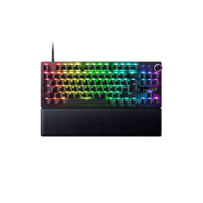 Razer Analog Optical Switches Gen-2 : Max out on precision and response with next-gen switches featuring Rapid Trigger for ultra-fast repeated inputs, a 0.1–4.0 mm adjustable actuation range, and a 100-million keystroke lifespan. True 8000 Hz HyperPolling : Gain a split-second advantage over your opponents with a blistering polling rate 8 times faster than the industry standard. Experience the fastest response and pull off every play without delay. Optimized Keystroke Feel : Individually lubricated to ensure extra-smooth actuation, each switch is seated in a dense foam layer to ensure a clean, muted typing acoustic that keeps you in your flow state. Quick Onboard Adjustments : Make precise, on-the-fly adjustments to actuation height or Rapid Trigger sensitivity with the visual aid of an onboard LED array. Save the settings to the keyboard with no software required. Multi-function Digital Dial & Dedicated Control Buttons : Manage it all right at your fingertips with a dedicated dial for volume and analog switch settings, backed by a trio of buttons for media control and custom macros. Textured Doubleshot PBT Keycaps : Made to withstand the wear and tear of intense competitive play, their shine-resistant design and fadeproof legends offer a degree of durability superior to regular keycaps.