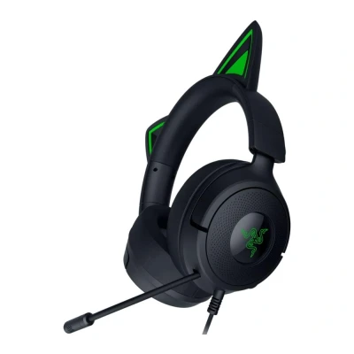 - Sink your claws into the competition with the Kraken Kitty V3 X gaming headset with kitty ears - This ultra-lightweight headset weighs just 270 g, so you can keep your head in the game for hours - Its TriForce 40 mm drivers pump out incredibly clear audio that'll put you right in the game - The HyperClear cardioid mic filters out background noise for crystal clear coms - Razer Chroma RGB lighting lets you customise and sync your battle colours with your other Razer peripherals - The memory foam ear cushions are soft and breathable for hours and hours of comfy gaming