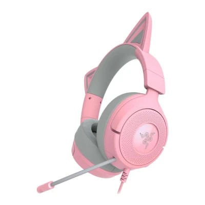 JoybuyThe Razer Kraken Kitty V3 X Quartz is a wired gaming headset featuring Razer Chroma RGB kitty ears, TriForce 40 mm drivers, and a HyperClear cardioid microphone, offering stylish looks, immersive sound, and clear communication—perfect for gamers who want performance, comfort, and a touch of personality.