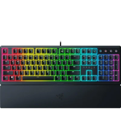 CurrysGame in total comfort. With its ergonomic design, type and play for hours on the Razer Ornata V3. The low-profile keys don't stick out, giving the keyboard a slimmer profile that feels more natural to type on. Giving you the best of both worlds, the hybrid mecha-membrane switches deliver a satisfying clicky feel. And it can't be a gaming keyboard without RGB. With 10 zones of Chroma lighting, you can customise the look from 16.8 million colours and loads of effects.Good to know- The textured keycaps are UV-coated for extra durability and scratch-resistance- Turn the volume up or lower your screen brightness with the backlit media keys- Stay comfy thanks to the ergonomic wrist wrest - it snaps on and off magnetically