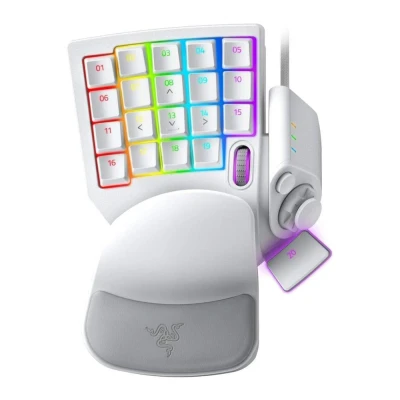 - Arm yourself with this keypad's arsenal of 32 programmable keys and keep all the controls at your fingertips- The partial and full keystroke come in handy when switching weapons and power-ups or browsing your inventory- Razer's analog optical switches actuate at mid-height with a tactile click to keep you ahead of the game- With the Synapse software, you can completely customise the functions and the Chroma backlighting- The adjustable palm rest is designed to fit your hand so you can play for hours without getting tired