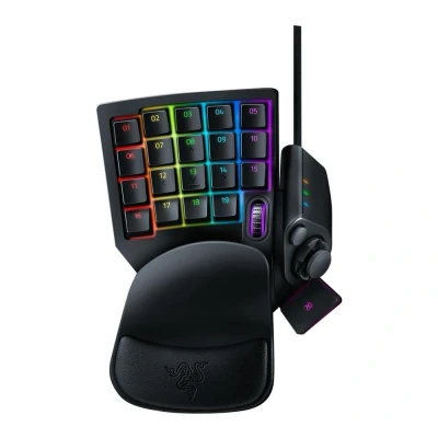 Good to know- Arm yourself with this keypad's arsenal of 32 fully programmable keys and keep all the controls at your fingertips- The D-pad and scroll wheel come in handy when switching weapons and power-ups or browsing your inventory- Razer's hybrid Mecha-Membrane switches actuate at mid-height with a tactile click to keep you ahead of the game- With the Synapse software, you can completely customise the functions and the Chroma backlighting- The adjustable palm rest is designed to fit your hand so you can play for hours without getting tired