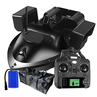 PREFERRED MATERIAL: three-stage bait design, input can be independently controlled to get more accurate bait, ABS engineering material injection molding hull. The hull is made of ABS engineering materials. It has excellent impact resistance and abrasion resistance, is easy to carry, and is sealed, safe, very comprehensive protection and battery power, anti-collision shell design. One-Key Return : You can set the home point, and press the 'one-key return' button to back to the home point. Simple operation,easy to control. Rugged Design -Dual motor dual motor design, waterproof cover design, can effectively prevent the propeller from sinking, unique function: cruise/yaw automatic calibration necessary for anglers fishing aids. LCD Display: Power display, distance display, position display, night light display and direction display. The LCD screen of the remote control will display the boat's power, compass and sailing meters. LED SUPER HEADLIGHT NIGHT OPERATION- Light design, convenient for nesting at night. The forward and aft two-tone lights clearly confirm the position of the ship at a great distance.