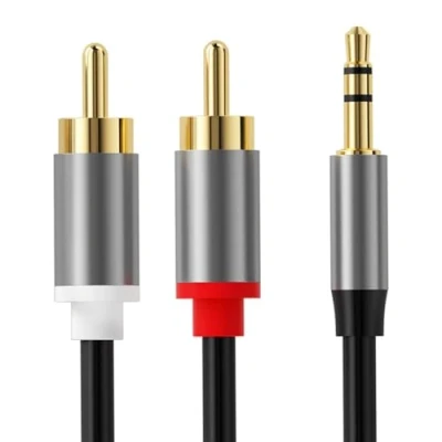 【Bi-directional Transmission】RCA to 3.5mm Audio Cable is Connecting a device with a 3.5mm connector to a device with dual RCA connectors (red and white), also can be supported RCA output to 3.5mm input or 3.5mm output to RCA input. 【Wide Compatibility】The Red and White to 3.5mm Jack Cable supports devices of aux or 2RCA/Phono ports, such as iPod, iPad, MacBook, smartphone, laptop, Notebook, MP3 players, CD player, DVD player, AV receiver, Hi-Fi amplifier, Hi-Fi speaker, subwoofer, turntable, soundbar, stereo headphones, projector, mixer, DJ controller, TV, car, home theater. 【Premium Material】Made of double-braided nylon material, the rca cables provides a durable and reliable using experience. This 3.5mm to rca cable has been bent over 10,000 times and can withstand frequent insertion and removal and long-term use. 【Outstanding Sound】The phono to 3.5mm jack are bulit with oxygen-free copper wires and 24-K gold-plated connectors protect against interference, prevent signal loss, reduce background noise, and delivers noise-free and ultra-clear sound. It can keep the sound clearer and purer, allowing you to immerse in high-quality music. 【Delivery Contents】You will receive Cable RCA Male to 3.5mm Male 2m. Contact us if you have any problem. We'll solve your problem within 24 hours.