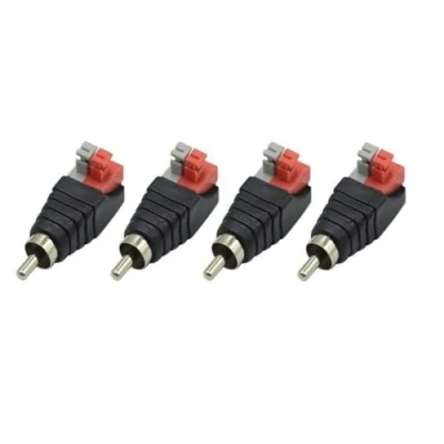 Can connect the audio and video interfaces of devices such as security lines, surveillance devices, home theater, background music, etc. and transmit audio and video signals. No splicing, no crimping, just a small screwdriver. Nickel plated for maximum signal transmission and durability. Simply and professional appearance for power cabling. Professional for CCTV installers and excellent for all DC cameras Part, CCTV camera accessories like video balun ect. Package includes: 4 pieces RCA Male Plug.