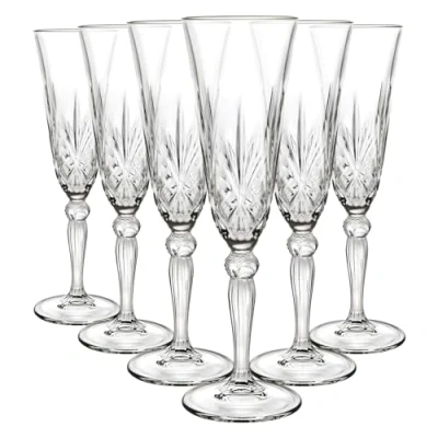 RCR Crystal Melodia Glass Champagne Flutes 160ml 6X Reusable Wedding Anniversary Birthday Party Prosecco Wine Cocktail Glasses Set