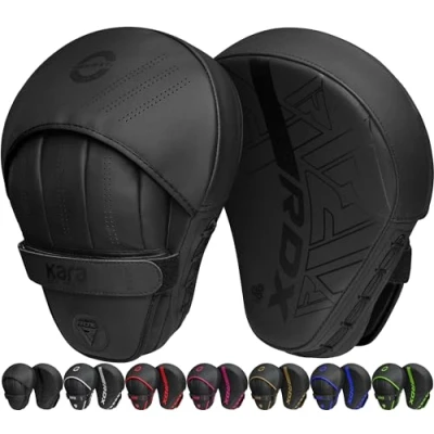 Amazon ENHANCED PRECISION TRAINING – RDX focus pads are designed to improve focus and are highly suitable to train fighters in precision hits. With a moving target, these focus mitts provide an enhanced training regimen in Boxing, Muay Thai, Kickboxing, MMA, Brazilian Jiu Jitsu, Karate, and other similar sports. MATERIAL MAKES THE DIFFERENCE – With a layer of high-quality Maya Hide leather over the paddings, RDX ensures that its Focus mitts are highly durable and last for a long time. The Maya Hide leather, along with EVA-Lution sheet and Polygonal Fusion foam that diffuse the brunt of the impact, helps create a pair of martial arts pads that gives its users an experience like none others. SWEAT-FREE EXPERIENCE – Using a combination of sweat-wicking fabric and strategic placement of ventilation holes in the hand compartments of the boxing pads, RDX strives toward creating a sweat-free and breathable training experience for its esteemed and valued users. UNYIELDING IRON GRIP – By using a combination of the unique Palm Dome in the hand compartments and anatomically curved design of the sparring pads, RDX ensures that the punching focus pads offer a comfortable and well-fitted hold that keeps the pads from slipping or sliding during extensive training sessions. EASY CLOSURE SYSTEM – The Quick-EZ Hook-and-Loop closure system makes it easy and convenient to put on and take off the kickboxing pads. The tightly fitting closure straps also offer optimal wrist alignment in the martial arts pads along proper fitting.
