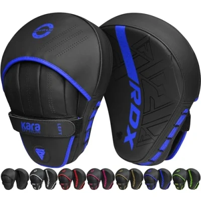 Amazon ENHANCED PRECISION TRAINING – RDX focus pads are designed to improve focus and are highly suitable to train fighters in precision hits. With a moving target, these focus mitts provide an enhanced training regimen in Boxing, Muay Thai, Kickboxing, MMA, Brazilian Jiu Jitsu, Karate, and other similar sports. MATERIAL MAKES THE DIFFERENCE – With a layer of high-quality Maya Hide leather over the paddings, RDX ensures that its Focus mitts are highly durable and last for a long time. The Maya Hide leather, along with EVA-Lution sheet and Polygonal Fusion foam that diffuse the brunt of the impact, helps create a pair of martial arts pads that gives its users an experience like none others. SWEAT-FREE EXPERIENCE – Using a combination of sweat-wicking fabric and strategic placement of ventilation holes in the hand compartments of the boxing pads, RDX strives toward creating a sweat-free and breathable training experience for its esteemed and valued users. UNYIELDING IRON GRIP – By using a combination of the unique Palm Dome in the hand compartments and anatomically curved design of the sparring pads, RDX ensures that the punching focus pads offer a comfortable and well-fitted hold that keeps the pads from slipping or sliding during extensive training sessions. EASY CLOSURE SYSTEM – The Quick-EZ Hook-and-Loop closure system makes it easy and convenient to put on and take off the kickboxing pads. The tightly fitting closure straps also offer optimal wrist alignment in the martial arts pads along proper fitting.
