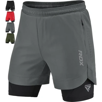 RDX Men’s Running Shorts, 2 in 1 Athletic Breathable Short Compression Liner, Zipper and Phone Pockets, Adult & Kids Lightweight Quick Drying Elastic Shorts for Sports Workout Jogging Cycling Gym