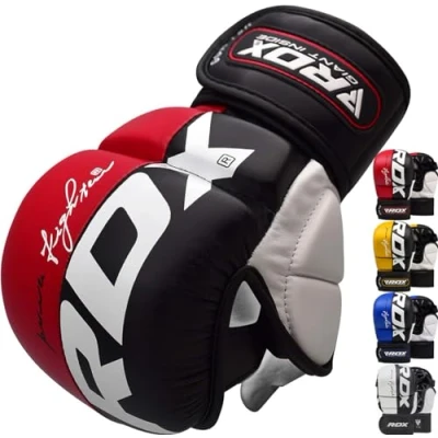 RDX MMA Gloves Grappling Martial Arts Punching Bag Maya Hide Leather Mitts Sparring Cage Fighting Combat UFC Training, Red, S