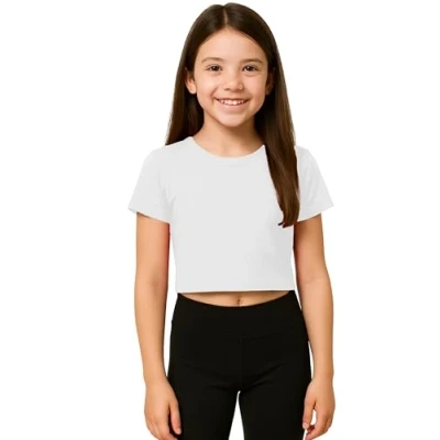 Girls Crop Tops in Fun Colors: Trendy girls' t-shirts in red, pink, neon, green, black, white, and orange. Made from soft stretch cotton, perfect for dance, P.E., casual outfits, or summer layering with everyday style. Easy to wear & wash. Girls' T-Shirts With a Twist: Upgrade basic girls' t-shirts with this stylish cropped version. Features include crew neckline, comfy cotton fabric, and bold shades like red crop top kids, pink tshirt girls, and green top girls for everyday outfits. Age-Perfect Fit for 5–14 Years: Sized just right for girls crop tops ages 5-13. Whether they want a classic white tee or an eye-catching neon tshirt for girls, these tops are perfect for school, holidays, and layered streetwear. Made for Active Kids: This kids crop top is loved & worn for gymnastics, P.E., and everyday play. Choose from popular styles like neon tops for girls, kids black top, and white crop top for girls. A Stretchy fit makes movement easy and comfortable. Easy to wear, Easy to Wash - These crop tops for girls feature a snug fit and vivid tones like girls red crop top and pink top kids. Ideal for summer, dance, or casual lounge wear in every season.