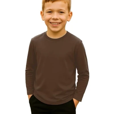 Re Tech UK Kids Long Sleeve T Shirt for Boys and Girls Lightweight Crewneck Tee Layering or Everyday Wear Plain, Stretchy, Soft Touch Top School, Play Lounging (Brown, 7 8)